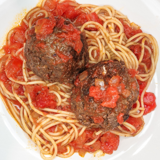Pasta Marinada con Albondigas rellenas de Queso Crema